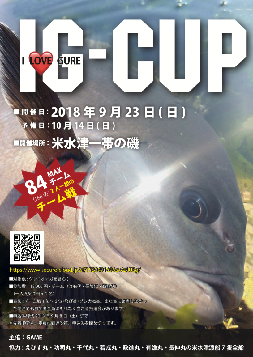 参加費:13,000円/チーム(渡船代・保険代・商品代) 一人6,500円 x 2名