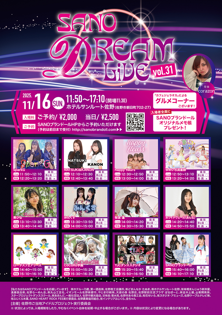 11月16日『SANO DREAM LIVE Vol.31』予約受付