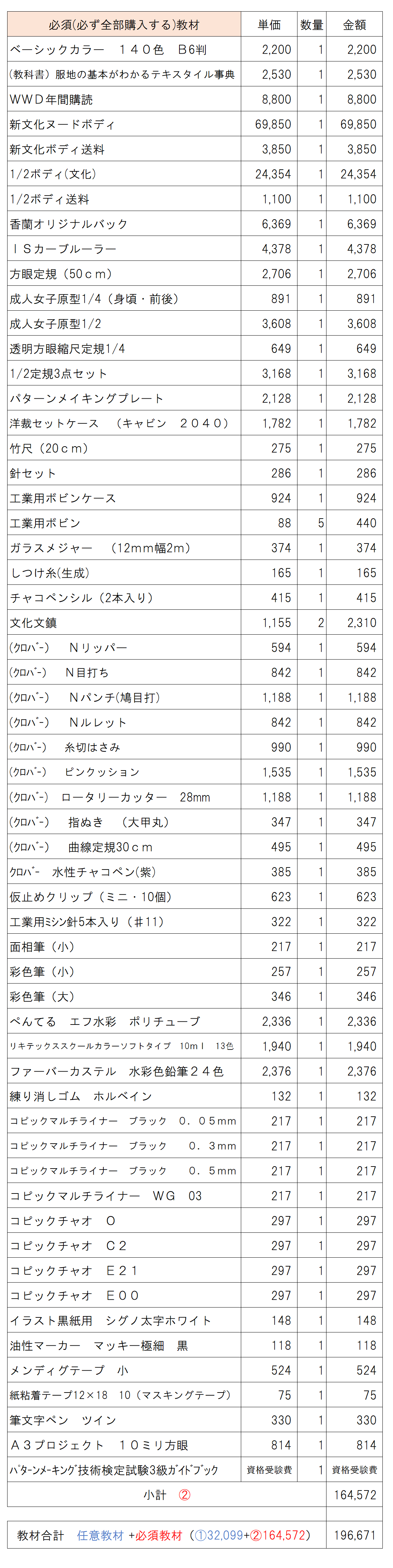 *必須教材は、必ず購入する教材です。取り消しはできません。