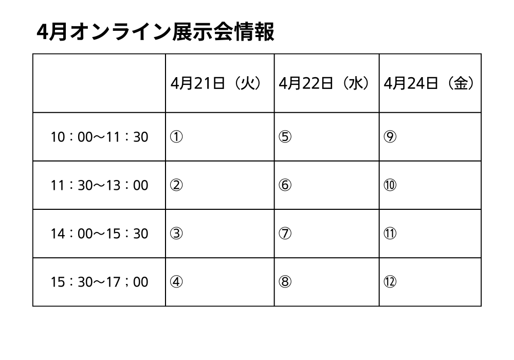 ◆展示会(4/8.4/9)にご来場予定の方はこちらをご入力ください◆