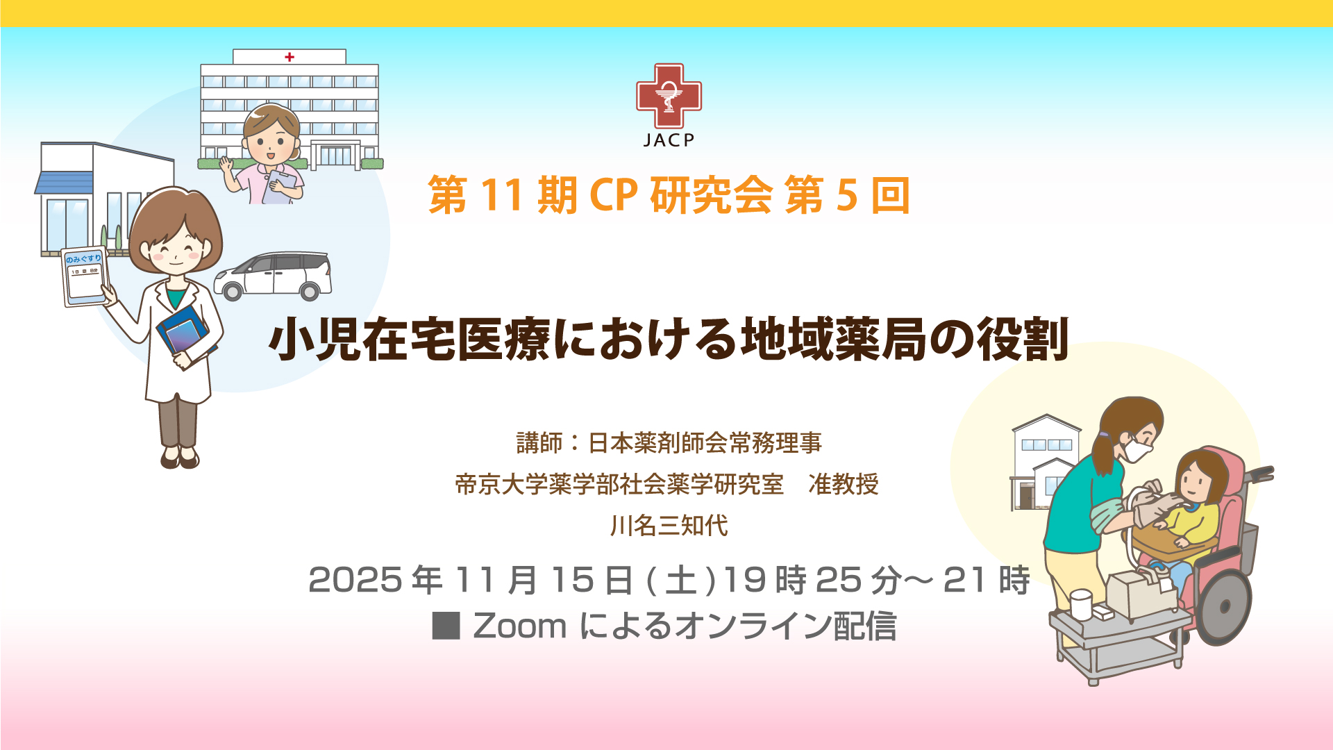 ■2025年11月15日(土)19時25分〜第11期CP研究会第5回「小児在宅医療における地域薬局の役割」JACP会員申込み