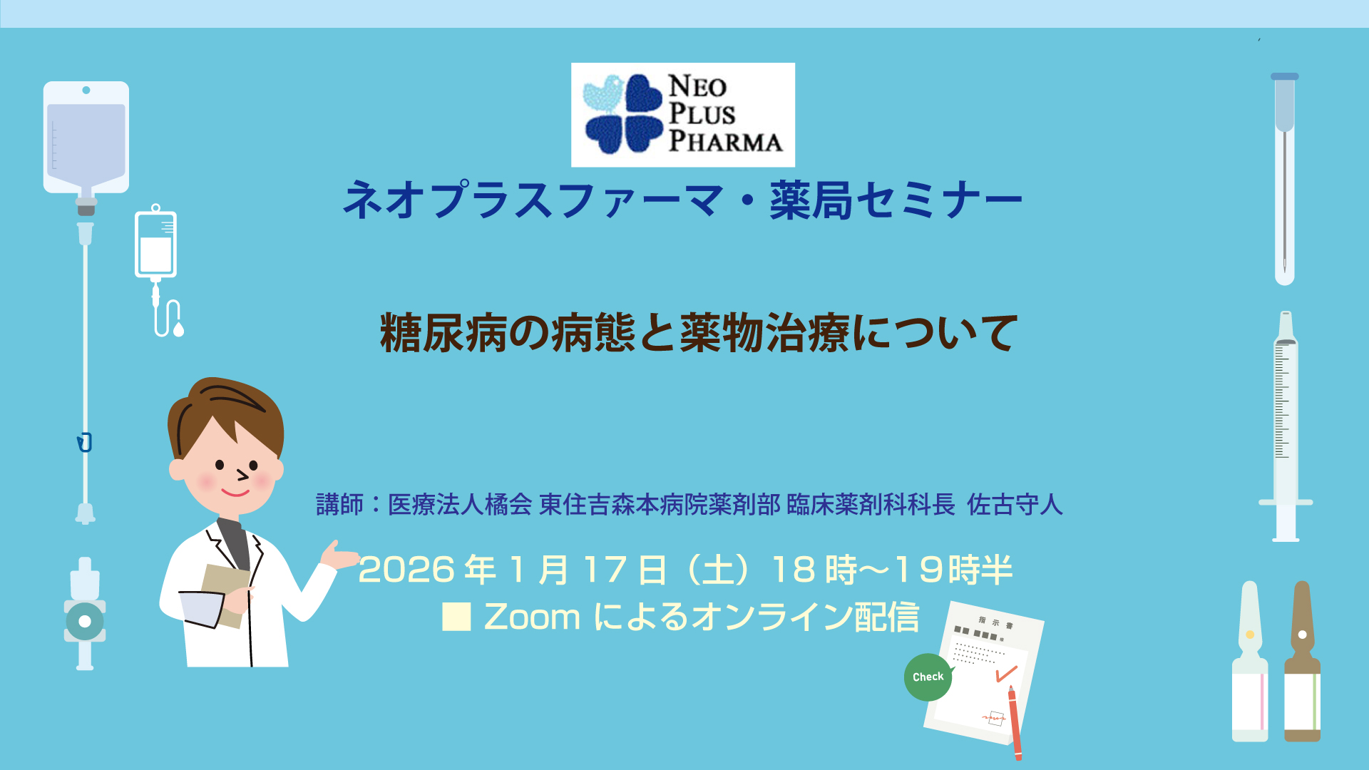 2026年1月17日(土) 18:00 -19:30ネオプラスファーマ・薬局セミナー「糖尿病の病態と薬物治療について」のご案内