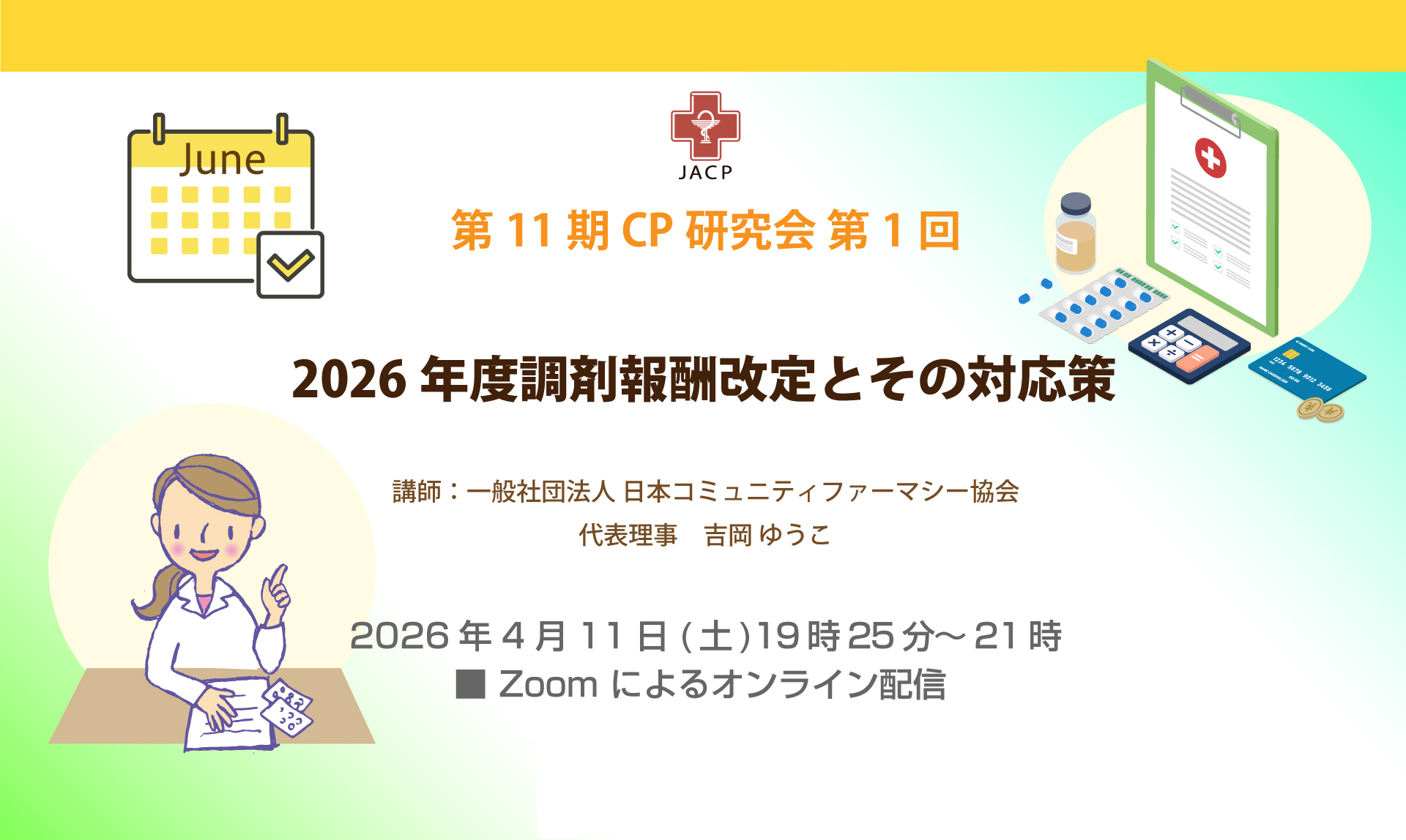 ◾️2026年4月11日(土)19時25分〜21時 第12期CP研究会第1回「2026年度調剤報酬改定とその対応策」JACP会員申込み